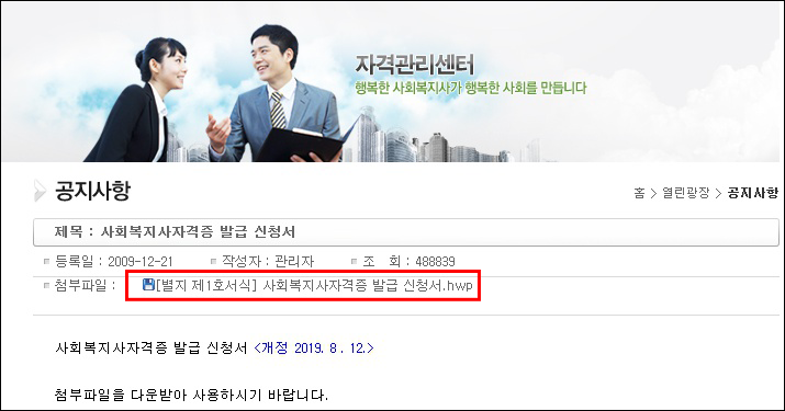 - ¨ç »çȸº¹Áö»çÇùȸ - Àڰݰü¸®¼¾ÅÍ : »çȸº¹Áö»ç ÀÚ°ÝÁõ ¹ß±Þ½Åû¼ 1ºÎ