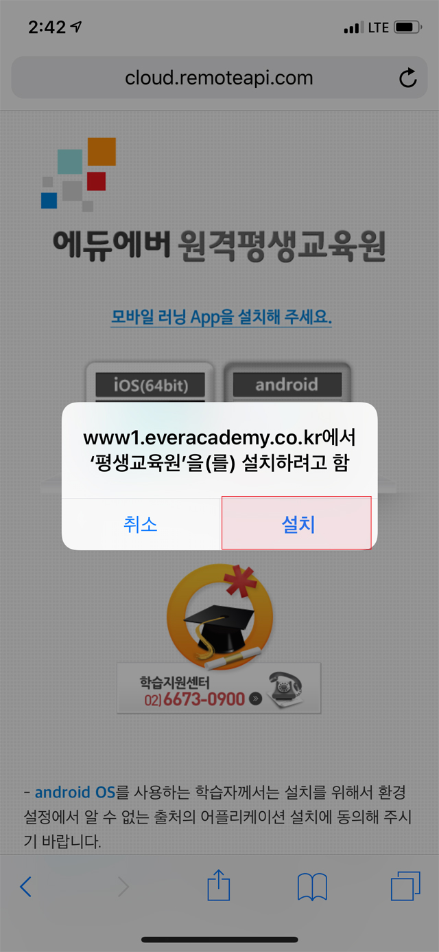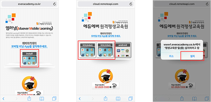 1. ¼³Ä¡ÆäÀÌÁö·Î Á¢¼Ó ÁÖ¼Òâ m.everacademy.co.kr ÀÔ·Â > ¼³Ä¡ÆäÀÌÁö·Î Á¢¼Ó