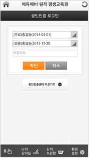 ¨ç ÇнÀ ÁøÇàÀ» À§Çؼ´Â (¹ü¿ë) °øÀÎ ÀÎÁõ¼ ·Î±×ÀÎÀÌ Çʼö»çÇ×ÀÔ´Ï´Ù. ¸ð¹ÙÀÏ¿ë (¹ü¿ë)°øÀÎÀÎÁõ¼¸¦ ¼±ÅÃÇÏ¿© ·Î±×ÀÎÀ» ÁøÇàÇÒ ¼ö ÀÖ½À´Ï´Ù.
