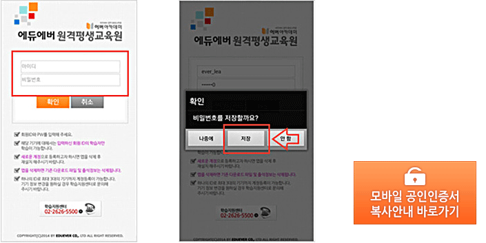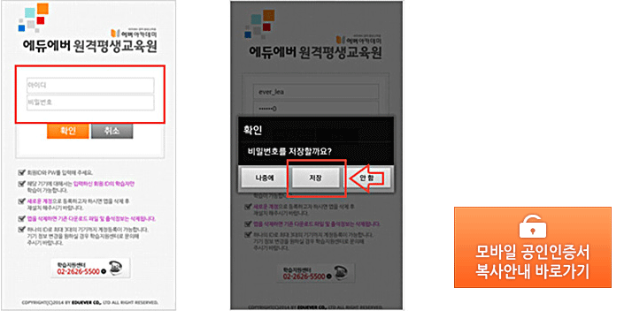 - ¿¥·¯´×À» ÅëÇÑ ÇнÀÀ» À§Çؼ´Â (¹ü¿ë) ¸ð¹ÙÀÏ °øÀÎÀÎÁõ¼¸¦ ¼³Ä¡ÇØ ÁÖ¼Å¾ß ÇÕ´Ï´Ù.